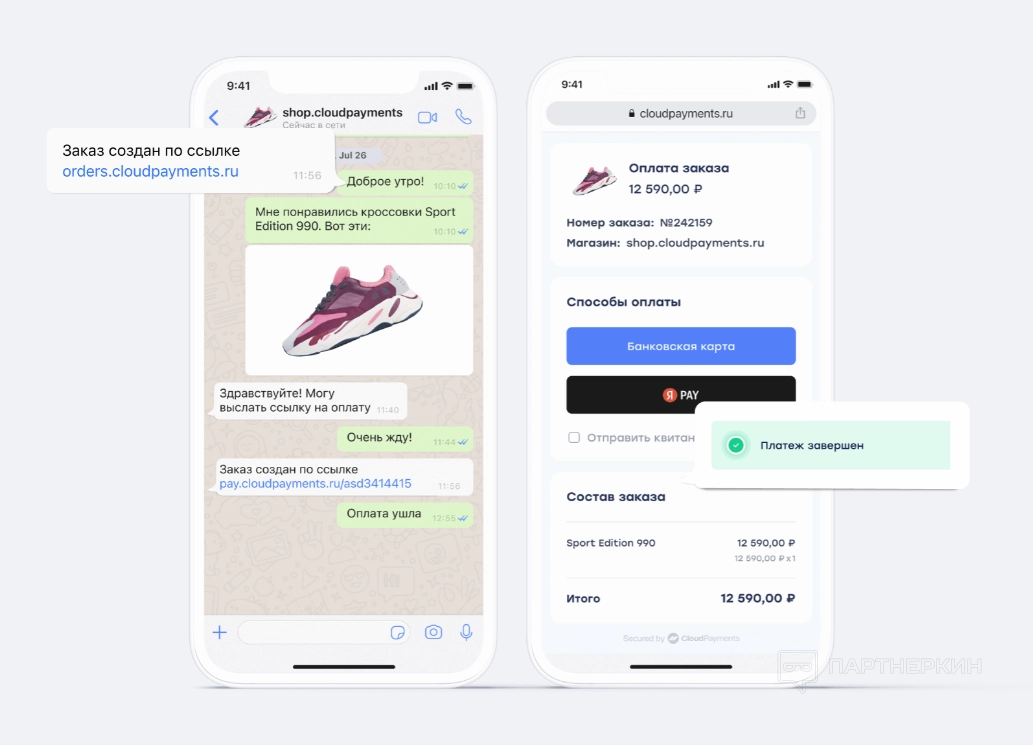 - Отправить клиенту платежную ссылку и получить оплату на расчетный счет.