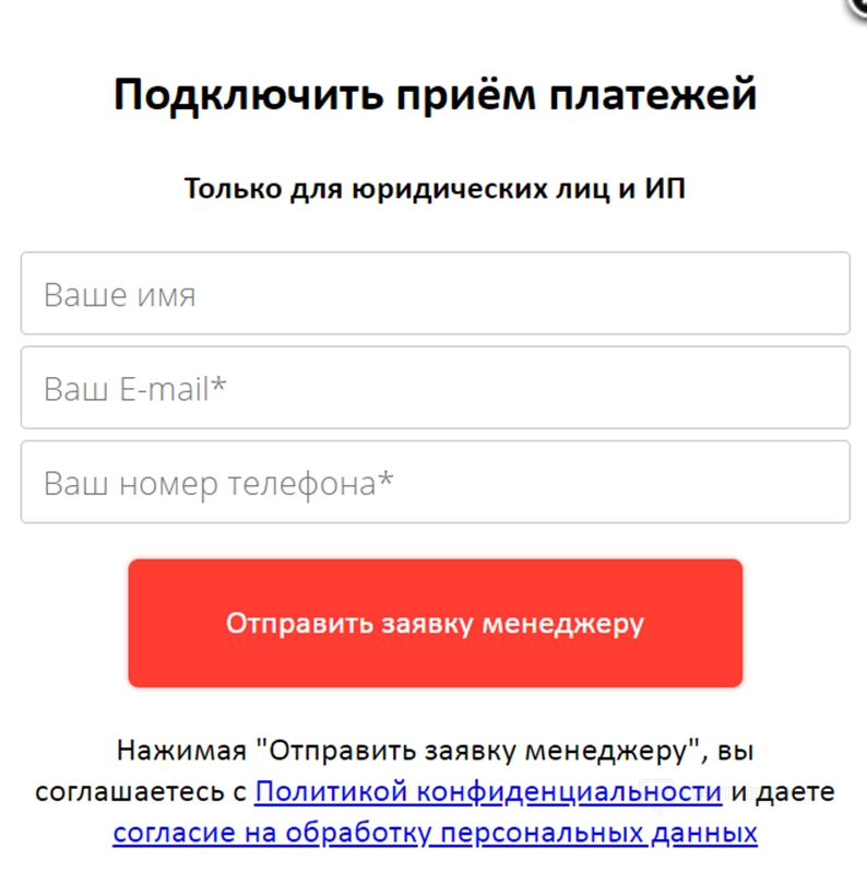 Доступ можно получить только после звонка менеджеру. Нужен SSL сертификат для доменного имени магазина. Также систему могут использовать только юридические лица и ИП.
