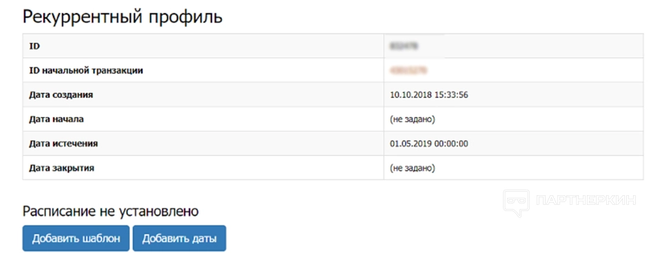 - подключение регулярных платежей (рекарринг);