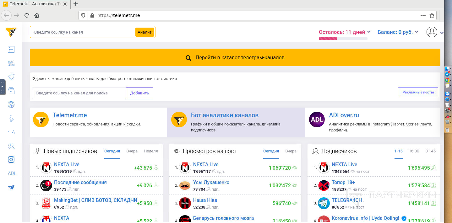 4. Telemetr . Самый мощный инструмент аналитики Telegram-каналов.