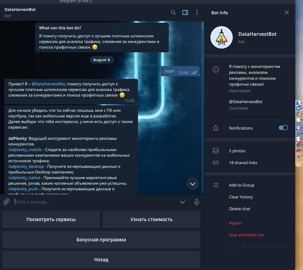 В боте у арбитражника есть доступ сразу к нескольким сервисам.