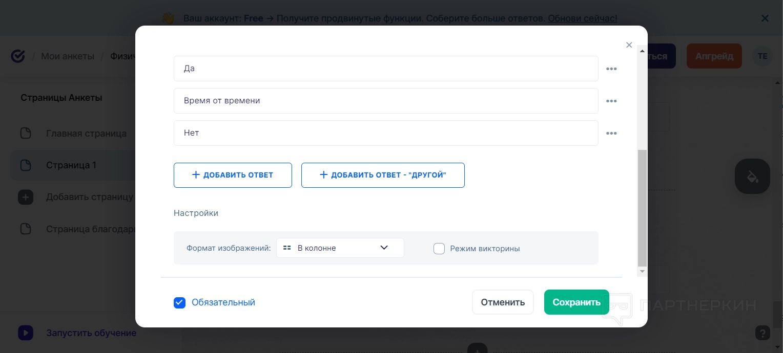 Помимо всех настроек вопрос можно отметить как обязательный — тогда пользователю придется на него ответить, иначе он не сможет перейти к следующему вопросу.