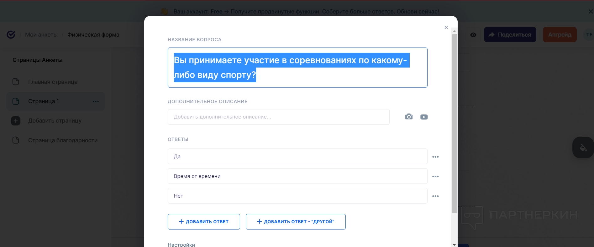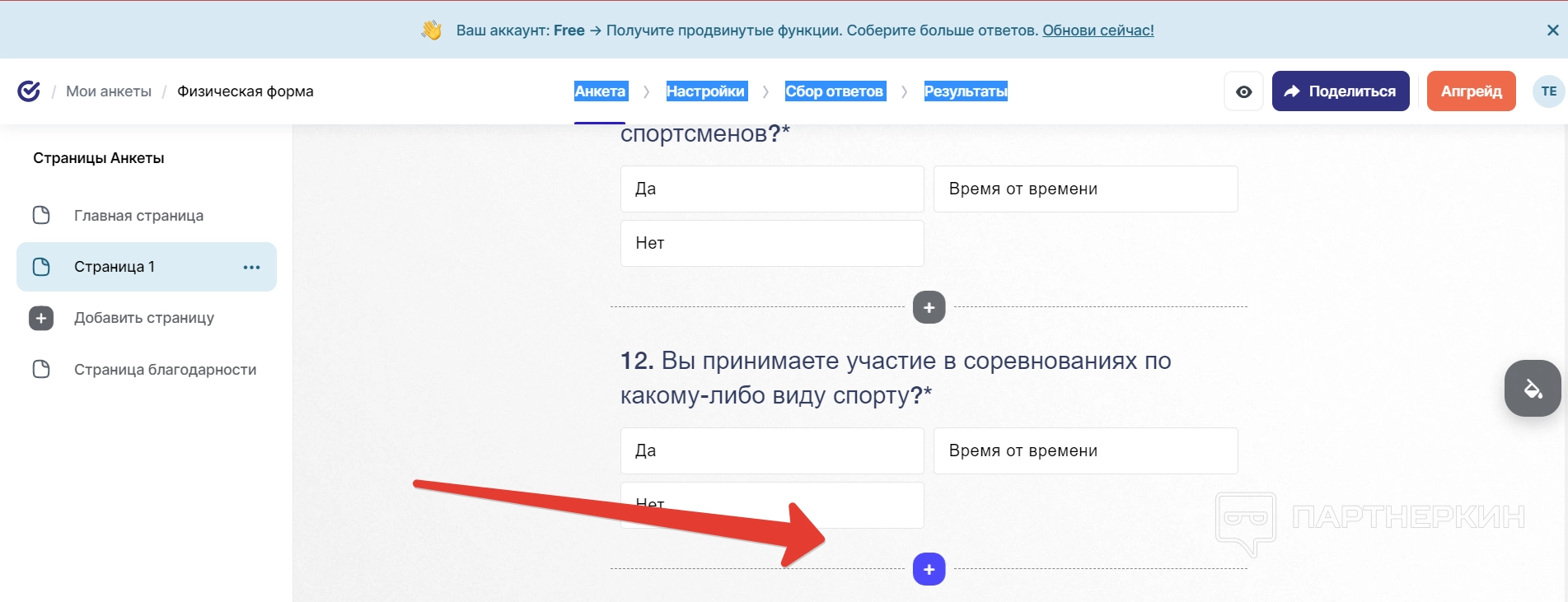Если не хочется работать над готовыми вопросами, их можно просто заменить на собственные — для этого достаточно нажать на плюс рядом с вопросом и вставить новый.