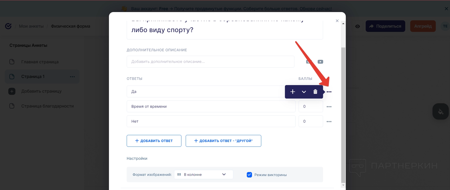 Что касается управления ответами, то пользователи могут их сдвигать вверх или вниз, а также удалять и добавлять после них новые варианты.