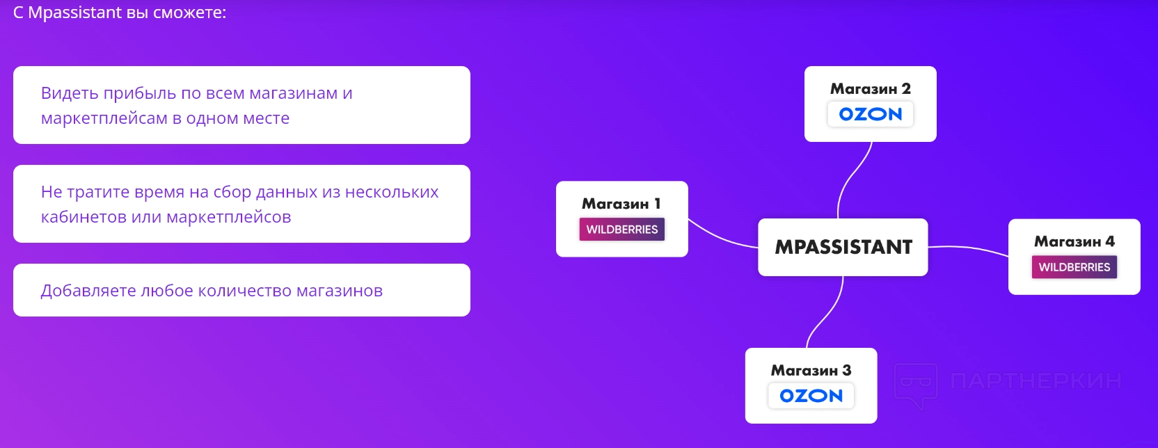 Недостаток сервиса: ограниченная интеграция . Сервис может быть подключен только к определенным маркетплейсам — это Ozon и Wildberries. Подключиться к другим платформам не получится.