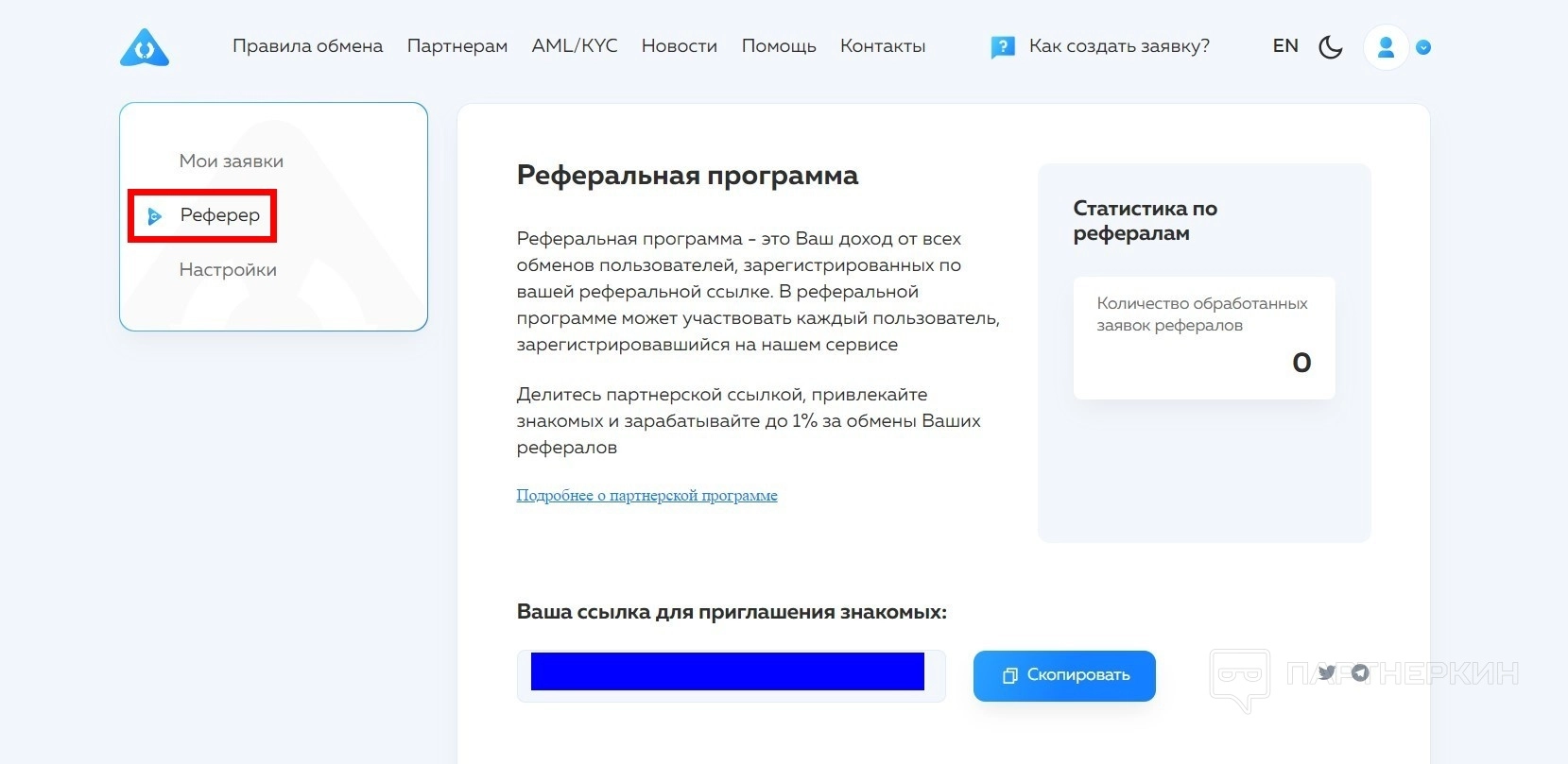 Реферальная программа на сервисе позволяет пользователям зарабатывать комиссии от обменов, проведенных их приглашенными друзьями или знакомыми. Каждый зарегистрированный пользователь может участвовать в этой программе.