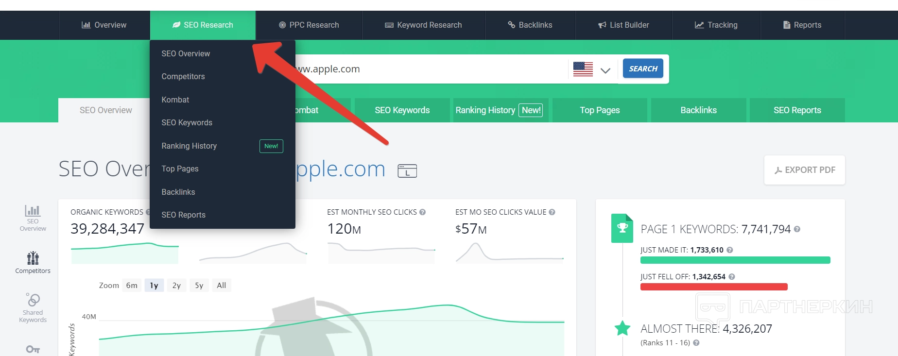 Seo-исследование — в этом разделе идет основной упор на анализ семантики сайта и сравнения ее истории с историями конкурентов. То есть можно узнать, какие ключевые и общие ключевые фразы используют конкуренты, а также об их ранжировании.