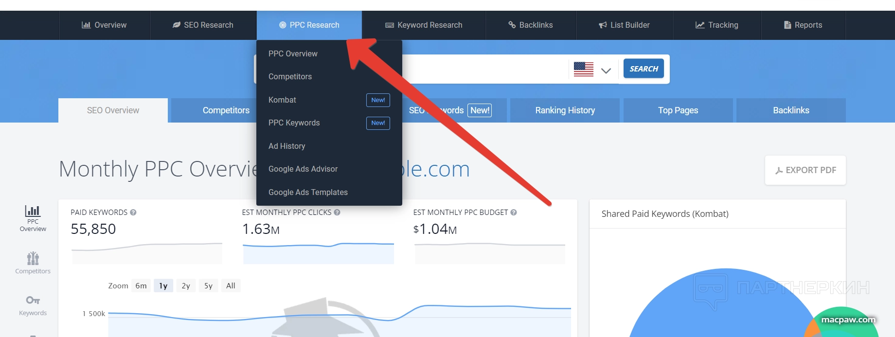 В разделе PPC-исследования подбиваются данные по оплаченному трафику и контекстной рекламе.