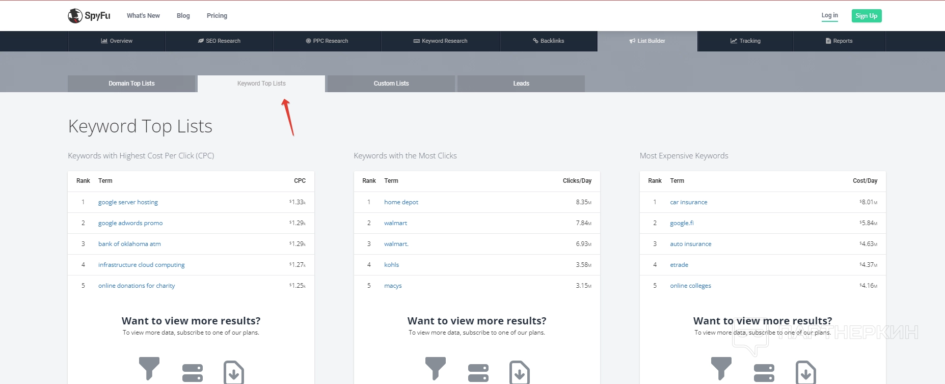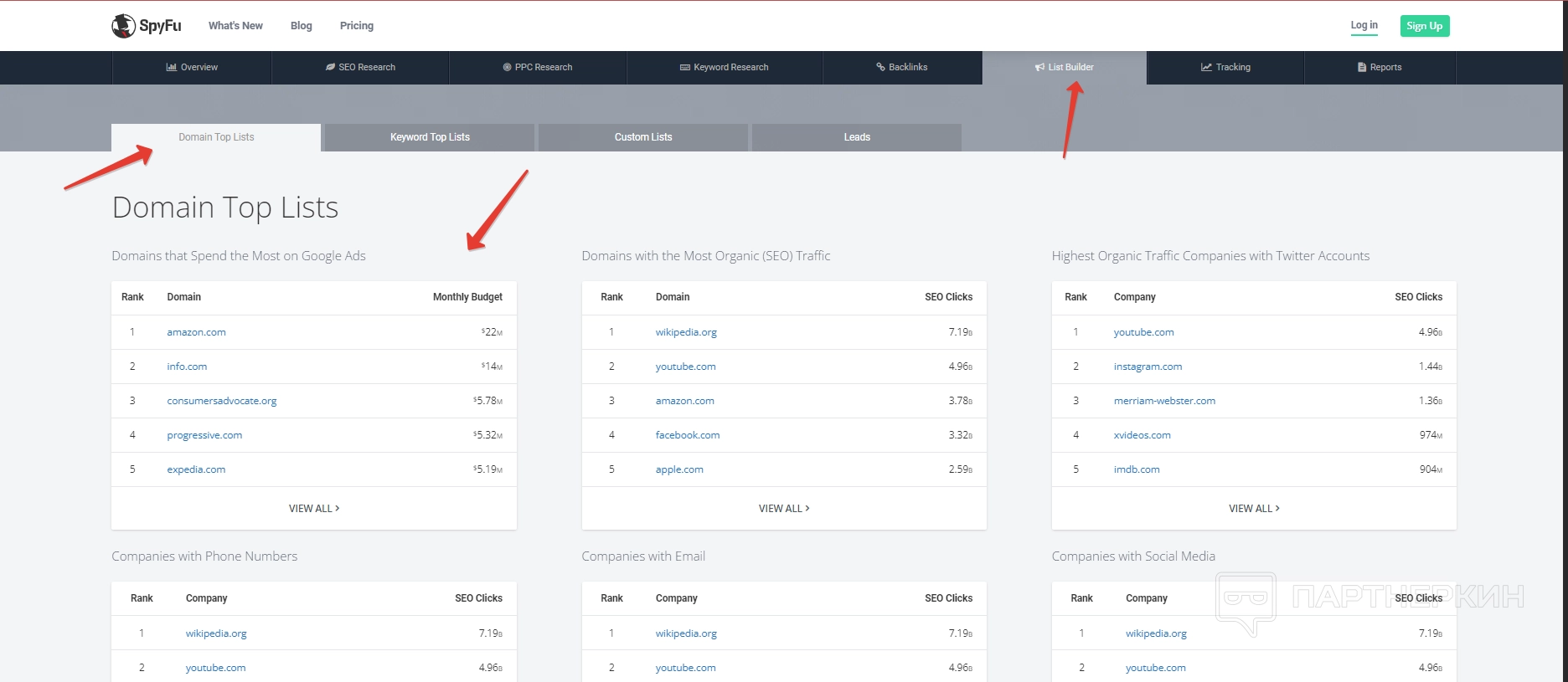 Списки — в этом разделе собрали основные списки, которые пригодятся при составлении рекламной кампании. Это списки с теми, кто больше тратит на контекстную рекламу, кто получает большую часть органического трафика, а также списки с популярными ключевыми словами и с контактами владельцев популярных сайтов.