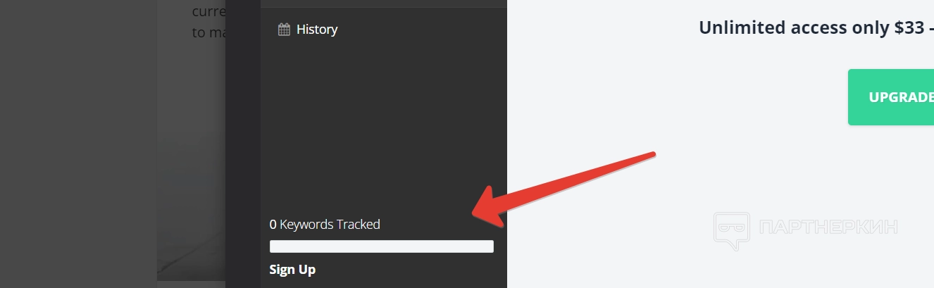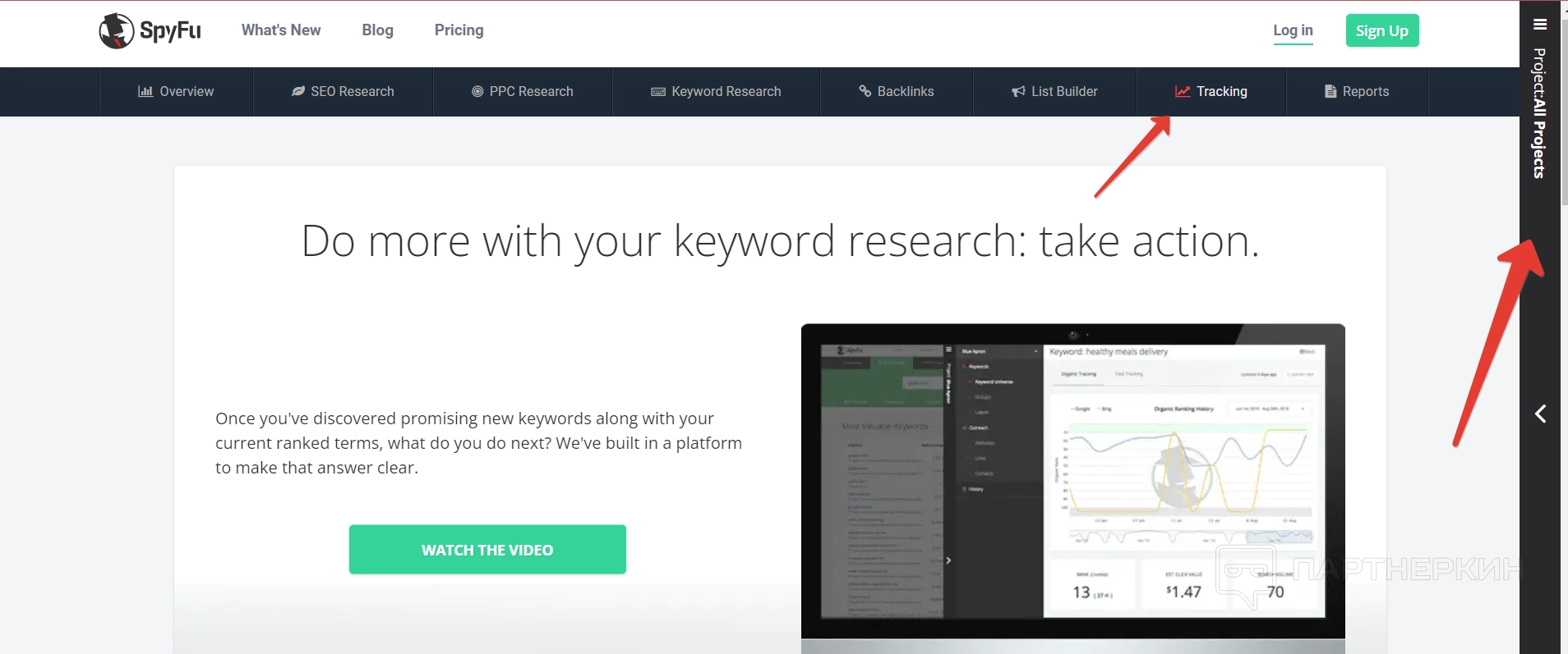 Отслеживание — этот раздел доступен только для тех, у кого уже есть подписка на сервис. Отслеживание помогает следить за изменениями по всем фронтам — в плане ключевиков, трафика, конкурентов и так далее.