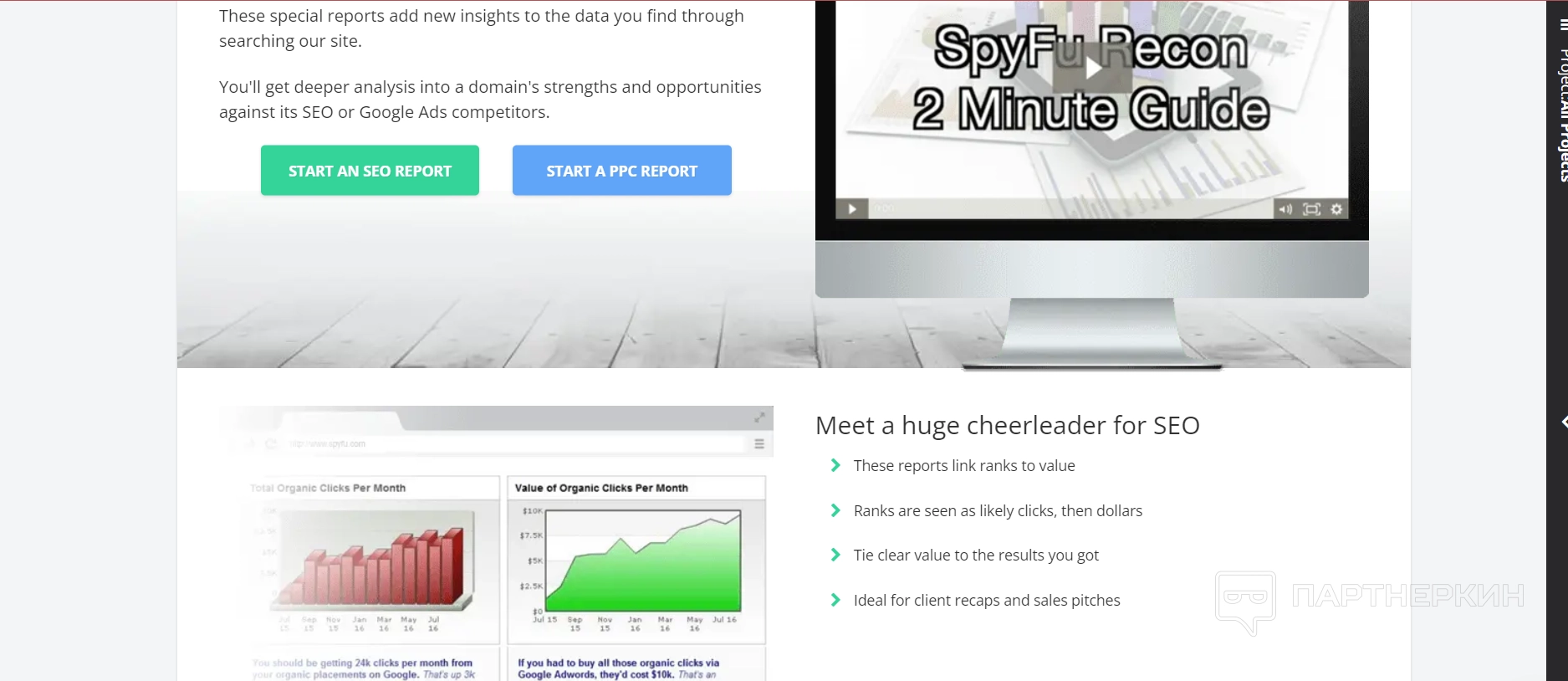 - индивидуальные отчеты — базово данные выглядят шаблонно, но после оплаты можно получать более индивидуальные отчеты, в которых система подсчитает вероятные затраты на кампании в будущем, а также даст рекомендации по ключевым словам конкретно для домена;