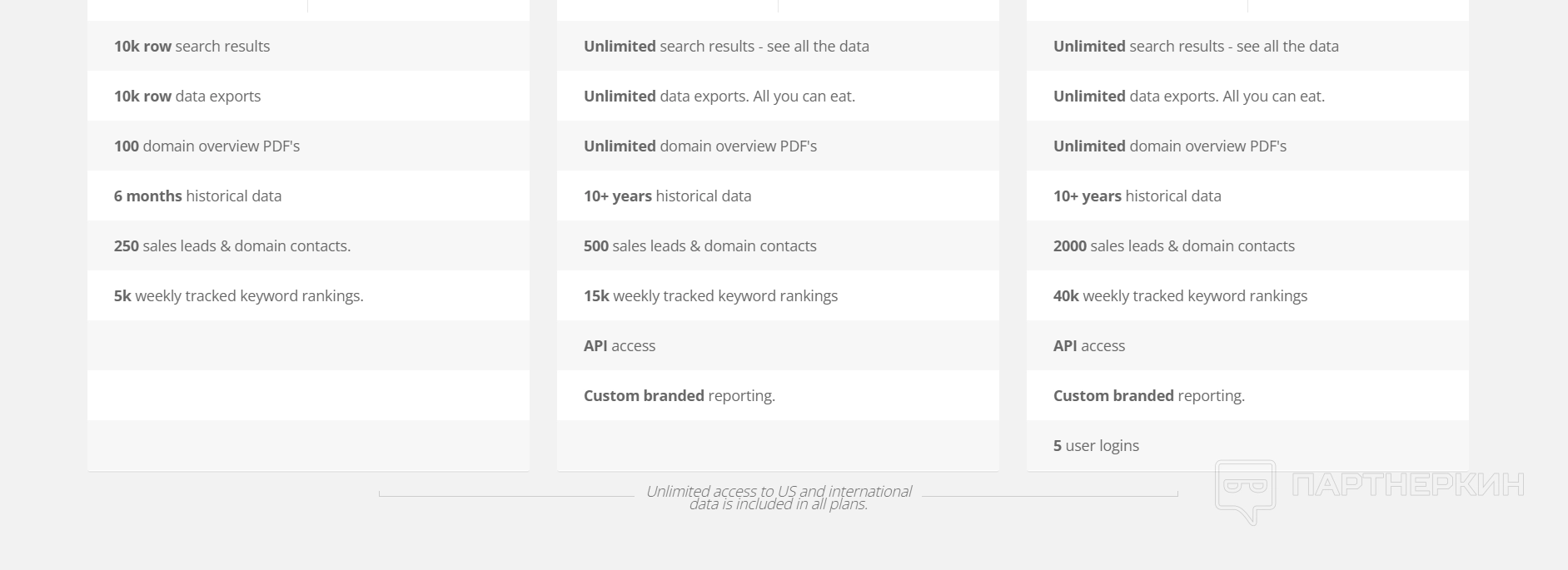 - в списках по любым запросам отражается более десяти тысяч строк — это могут быть конкуренты, ключевые фразы или обратные ссылки;