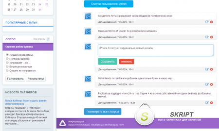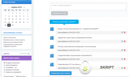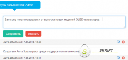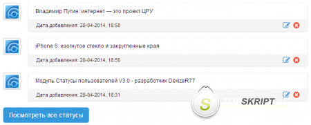Модуль Статусы пользователей v3.0 выводить на страницу пользователя добавление статусы.
