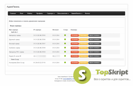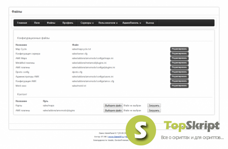 Game AdminPanel 0.9.8 Rus — web-панель для управления игровыми серверами. Позволяет управлять серверами таких игр как Half-Life, Counter-Strike, Team Fortress и других. Написана с использование PHP фреймворка CodeIgniter 2.1.3, благодаря этому панель очень гибка в настройке, расширении модулями. АдминПанель поддерживает несколько операционных систем, работает с самыми популярными базами данных (MySQL, PostgreSQL и др.), поддерживает все игры Valve.