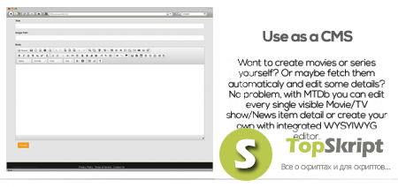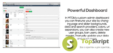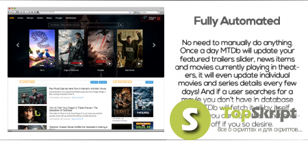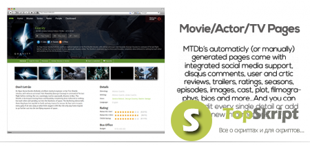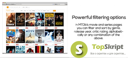 MTDb 2.0.2 - является полнофункциональным движком для создания кино сайтов. Он поставляется с передовой системой членства, системой критиков и отзывов пользователей, системы новостей и многое другое.