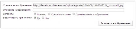 4. Добавлена возможность при вставке загруженных к новостям картинок указывать в каком виде их вставлять. А именно, увеличивать их при клике на них до оригинального изображения, или вставлять их просто в виде изображений, без каких-либо ссылок в них.