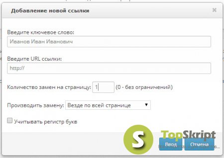 19. Для модуля управления перекрестными ссылками в админпанели скрипта добавлена возможность массовой установки области замены ключевых слов, а также добавлена возможность массово устанавливать учитывать регистр букв или нет.