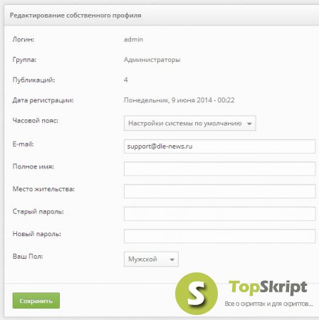 20. Добавлена возможность редактирования значений дополнительных полей для профиля пользователя, непосредственно в админпанели скрипта в разделе настроек собственного профиля пользователем.