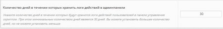 35. В настройки скрипта добавлена возможность указывать количество дней, в течении которых, необходимо хранить логи скрипта, для модуля "Список всех действий, выполненных в админпанели скрипта". При этом минимальным количеством дней в целях безопасности остается 30 дней, чтобы злоумышленник не мог удалить логи действий, а администратор сайта при желании может увеличить необходимое количество дней, например, до трех месяцев или года и т.д.