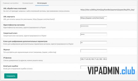 Очень прост в настройке. В настройках мерчанта в аккаунте Payeer не требуется указывать URLs.