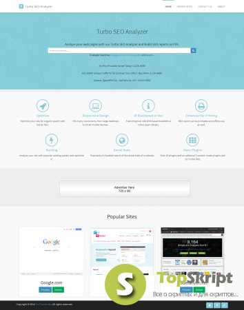 Turbo SEO Analyzer v1.4 является SEO инструментом, который позволит вам собирать различные статистические данные SEO, как Alexa Rank, Google Page Rank, WHOIS информацию и различные статистические данные социальных сетей и т.д. Отчеты можно просматривать не только на сайте, но они также могут быть загружены как PDF файл.