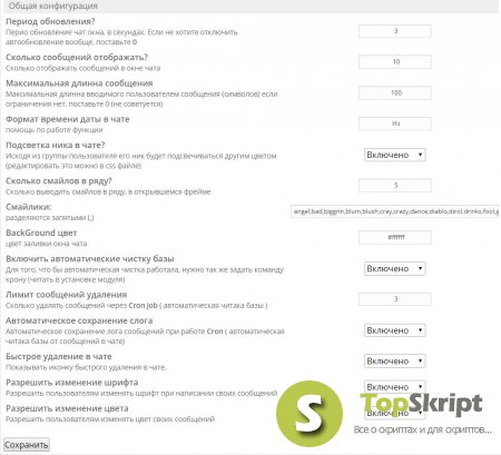 1. Написание сообщения в чате с выводом аватарки. Есть возможность написать, обращаясь к конкретному пользователю. Поддерживаются бб теги, смайлы, цвета, шрифты.. Администратор или модератор может удалить сообщение.