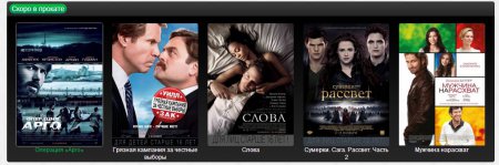 В самом верху расположен блок для кино, которые скоро будут добавлены на сайт (так называемая афиша). Но поскольку в DLE это реализовано через кастом, можно отображать фильмы из любой категории, не обязательно Афиши, а, например, Рекомендуем.