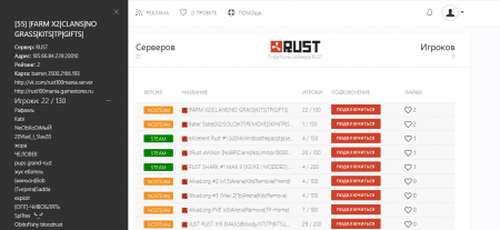 Мониторинг поддерживает такие игры как SAMP, RUST, HURTWORLD, MINECRAFT, ARMA, CS:GO, CS 1.6, Dayz, Gta5, Left4 Dead 2, MineCraft PE, MTA, Unturned и еще 98 других игр.