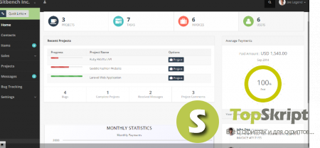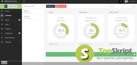 - Каждый клиент может войти в систему и посмотреть свои проекты и оплачивать счета. Вы можете выбрать, чтобы позволить регистрацию клиента или отключить его.