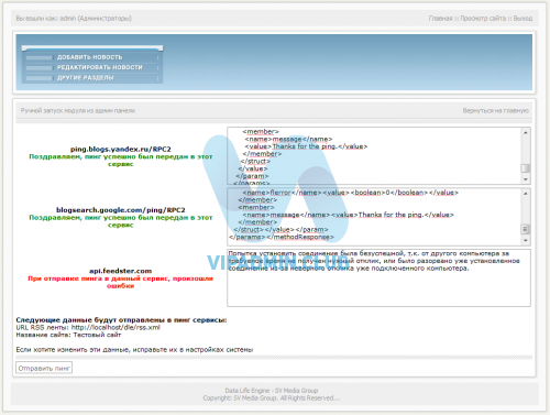 -При публикации новости, через админ панель теперь пингуеться URL данной новости (а не ссылка на RSS ленту, поддерживается любая структура ЧПУ, которую Вы зададите в админ панеле)