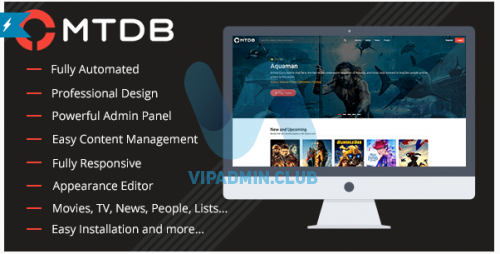 MTDb позволяет вам легко создать свой собственный полнофункциональные сайт с фильмами и телешоу (киносайт) за считанные минуты с нулевым знанием в программировании. Полностью автоматическая система: если пользователь не нашел желаемый фильм, скрипт автоматически возьмет данные и покажет пользователю. Поддерживает авторизация через популярные соц. сети, мощный фильтр для удобного поиска фильма/сериала/тв-шоу. Скрипт автоматически генерирует страницу с фильмом: трейлер, комментарии, картинки, роли, биографии и т.д. Легкая система перевода на любой язык, простая установка в 2 минуты и много других функций!
