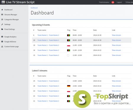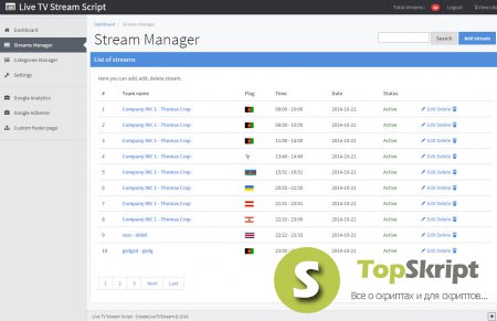 Live TV Stream Script 2.1 является полнофункциональным скриптом, который позволит вам запустить свой собственный сайт с ТВ потоками.